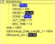 In online mode , the declaration editor changes into a monitor window. In each line there is a variable followed by the equal sign (=) and the value of the variable. If the variable at this point is undefined, three question marks (???) will appear. For function blocks, values are displayed only for open instances (command: 'Project' 'Open instance').