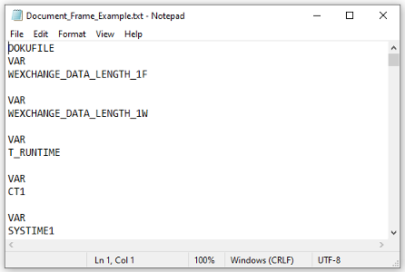 The created file can be loaded into a desired text editor and can be edited. The file begins with the DOCUFILE line. Then a listing of the project variables follows in an arrangement that assigns three lines to each variable: a VAR line that shows when a new variable comes; next, a line with the name of the variable; and, finally, an empty line. You can now replace this line by using a comment to the variable. You can simply delete any variables that you are unable to document. If you want, you can create several document frames for your project.