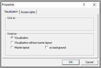 Master layout: The object will be used as Master Layout. Per default the master layout always will be in the foreground of a visualization, except the option as background is activated.